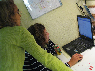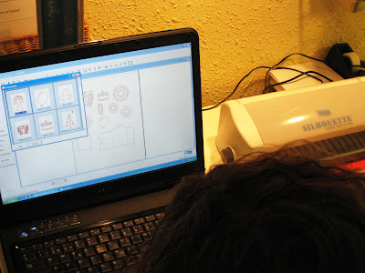 Fue una matinal estupenda, Carmen nos trajo la Silohuette para poderla conocer y probar : menuda maravilla, una máquina genial para cortar cualquier forma, letra, etiqueta, lo que sea , desde el ordenador.