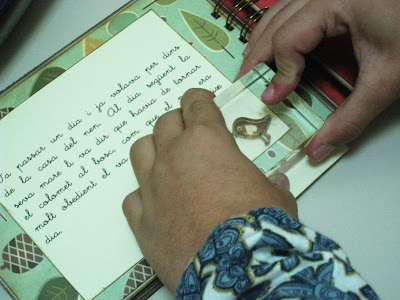 Carla nos enseño un precioso cuento, cuya autora es su abuela Carlota, y que ella ha escrito e ilustrado en formato de libreta y con los papeles de Cosmo Cricket - Mr.Campy. Un regalo único, y una gran idea para agradecer a los abuelos que todavía mantengan esa tradición oral de explicar cuentos. ¿ Qué nos pasa a los de mi generación, que solo sabemos usar el DVD ???.