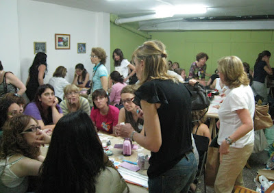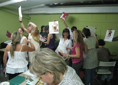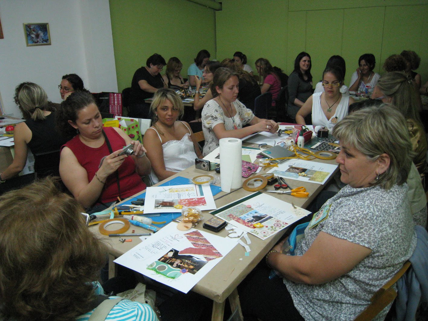 Y hoy domingo nos hemos reunido en el Fem Scrap, una fantástica reunión organizada por Esther, y que ha tenido lugar en Barcelona. Por la mañana hemos realizado diversos talleres de corta duración, impartidos por diferentes talleristas catalanas.