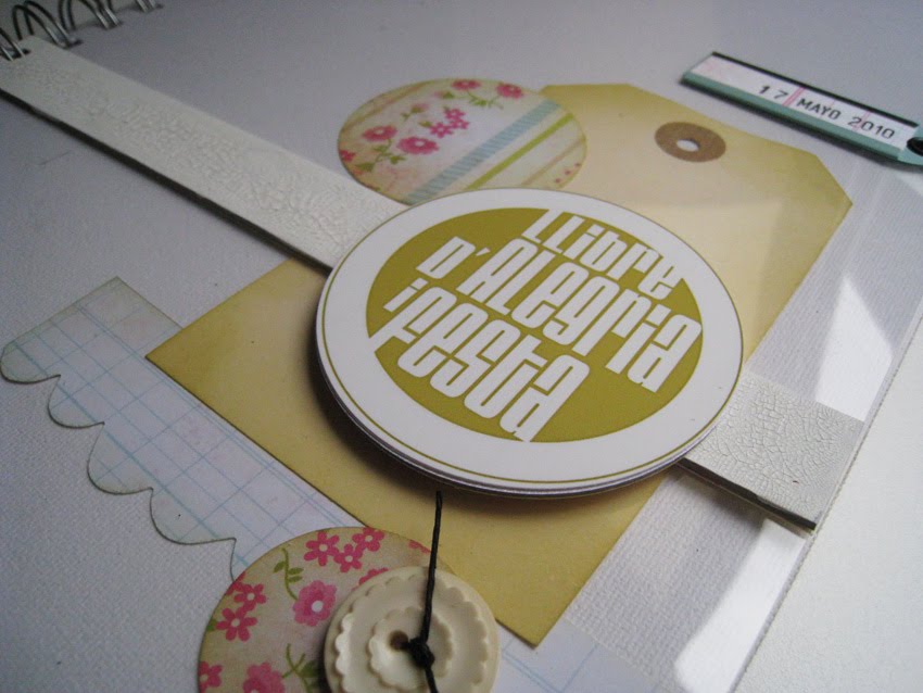 Aquests són alguns petits detalls del projecte del proper Taller d'Scrapbook a Sabadell, "Llibre d' Alegria i Festa", un preciós àlbum de fotos de mida A4, ideal per qualsevol tipus de cel.lebració. El projecte es realitza de començament a final, inclosa la seva enquadernació, i utilitzem materials d'scrapbook com papers decorats, tintes i segells de col.leccions molt recents.