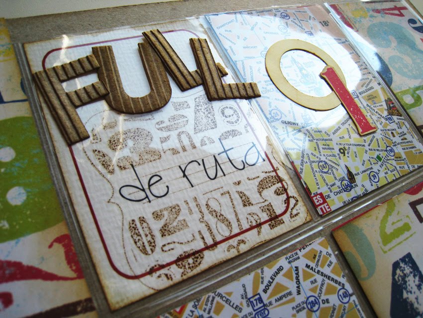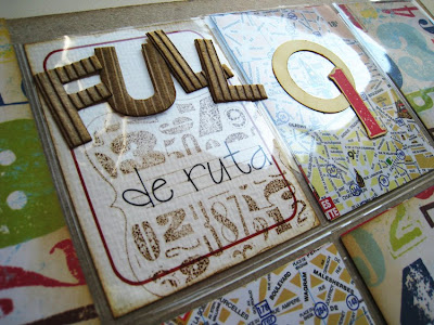 És un àlbum de viatges, no només un àlbum de fotos, un espai per recollir el record dels llocs visitats i una mica d'informació de cada punt, per guardar algun petit diari, i per les fotos divertides i testimonials. Tot realitzat amb la col.lecció de papers On Holiday de Girls'Paperie, i també els seus segells, i decoracions més divertides, i fins i tot un abecedari adhesiu de Making Memories, de la seva última col.lecció Panorama, acabada de sortir a les botigues d'EEUU.