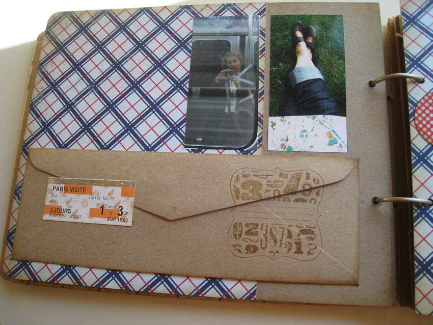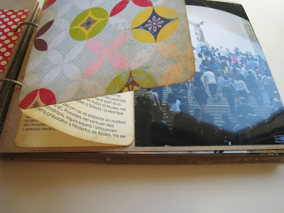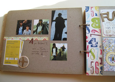 El proyecto se desarrolla en varias partes : una primera parte corresponde a la presentación del destino (foto superior) y a continuación en un par de páginas se recogen las fotos del viaje, con el espacio adecuado para los billetes.