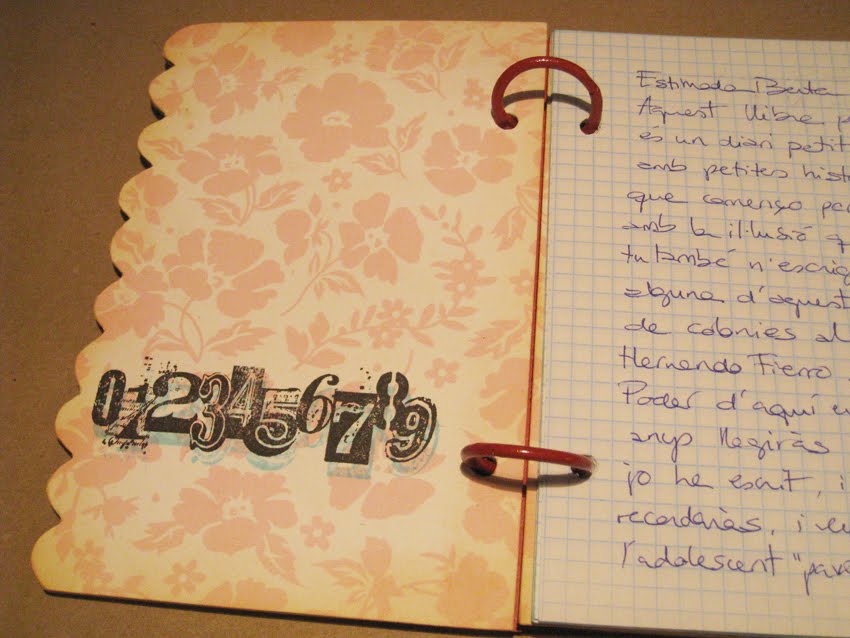 Hoy quiero mostraros uno de estos minis acabado, dedicado a mi hija Berta, y que va a serle entregado durante los días de colonias, a modo de carta. Seguramente ella estará muuuuuyyy ocupada para escribir nada, pero espero que tenga un minuto para leer lo que le he escrito en él, aparte de mirar como lo he decorado.
