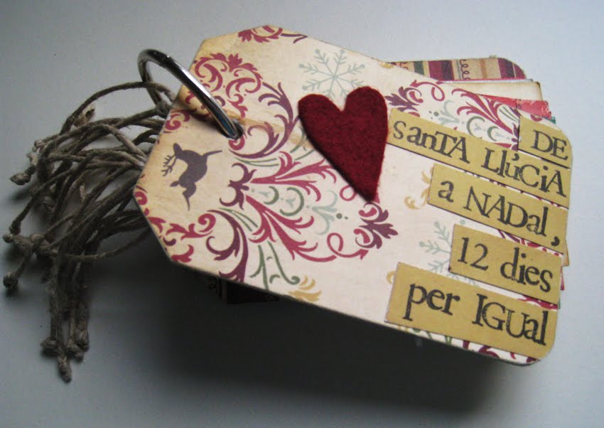 "De Santa Llúcia a Nadal, 12 dies per igual" : un bonic mini-album amb dotze targetes de magatzem decorades, per penjar al teu arbre. I un cop passi el Nadal, les tornes a guardar dins l'àlbum.