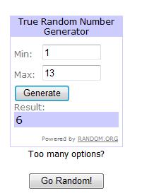 Y con el servicio que ofrece Random.Org pues me he limitado a seguir el resultado que la maquinita ofrece vía Internet.